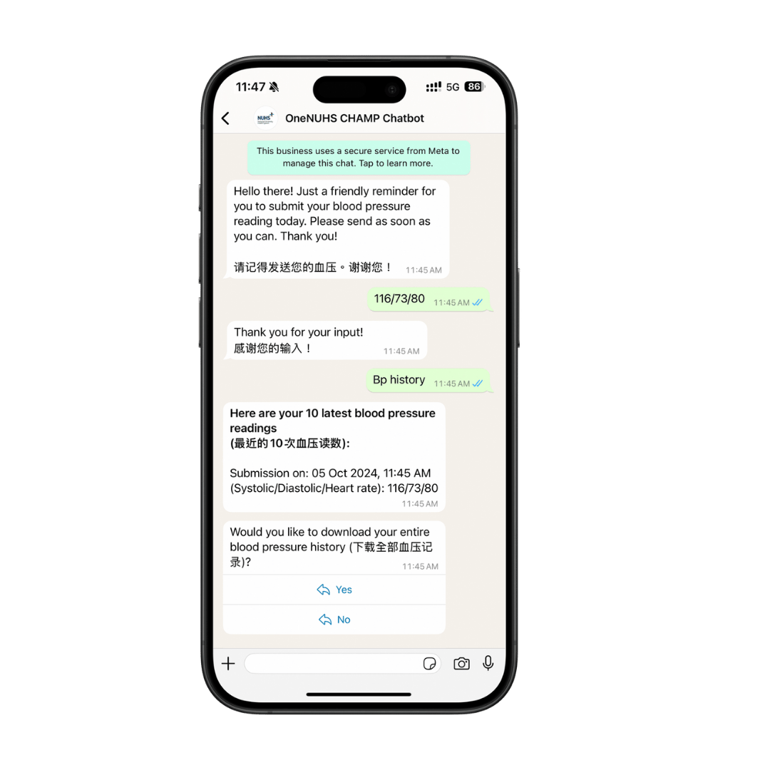 Your Digital Heart-Health Companion CHAMP is a WhatsApp-based digital companion that supports long-term blood pressure management through gentle reminders, easy logging, and data-driven insights.